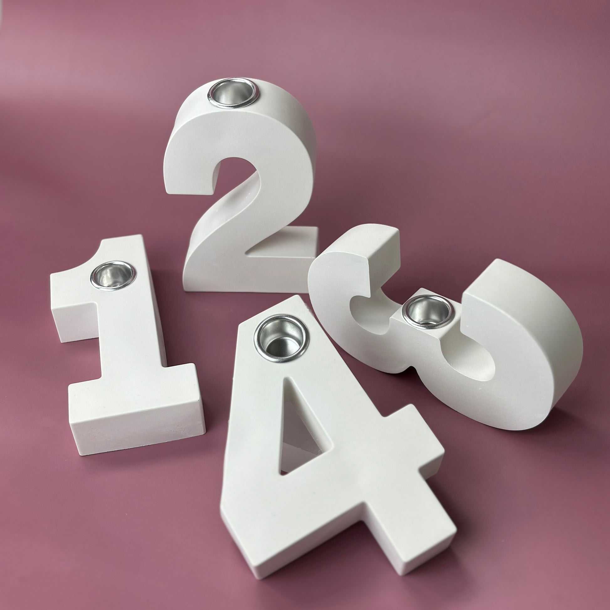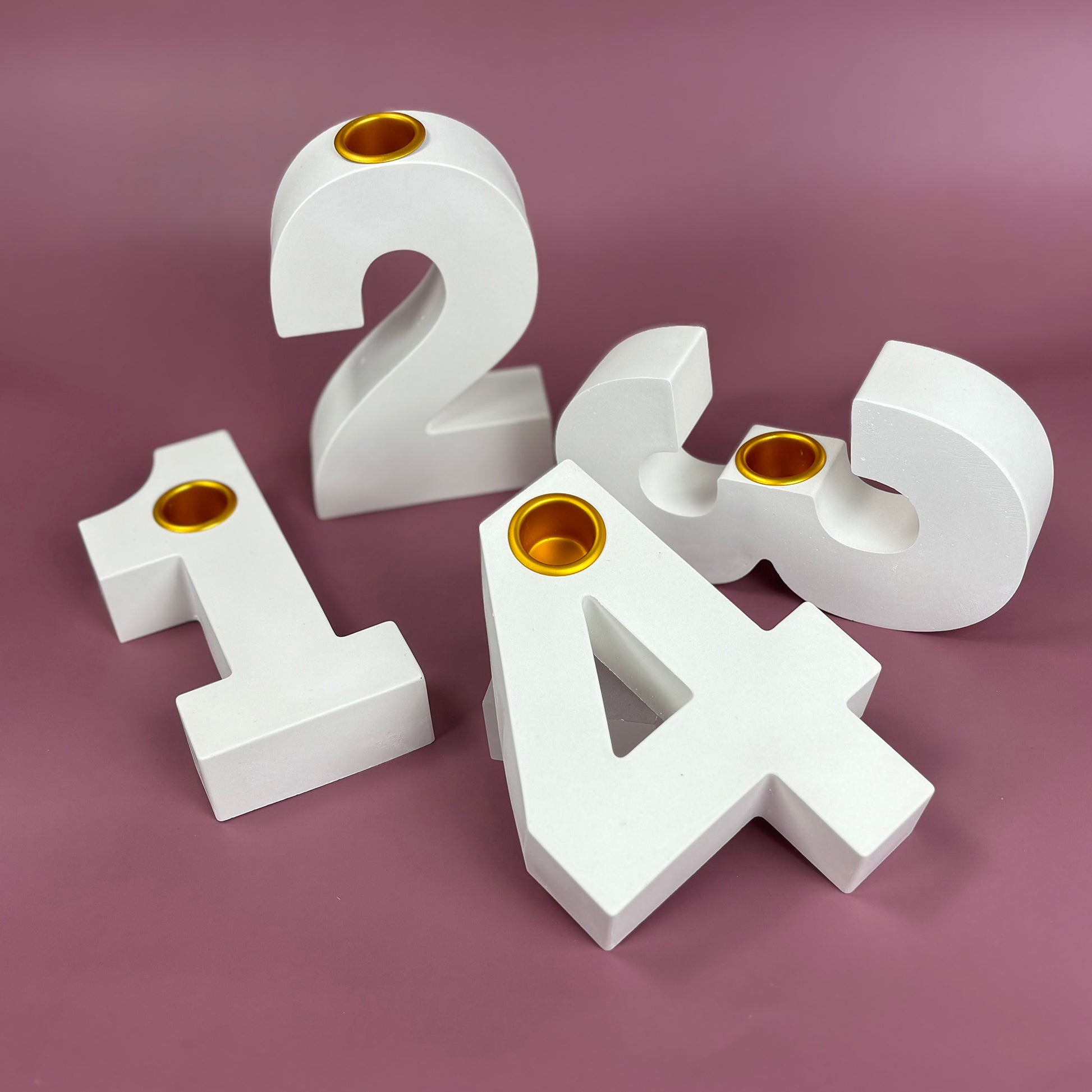 Adventszahlen aus Keraflott mit eleganten Kerzenhaltern