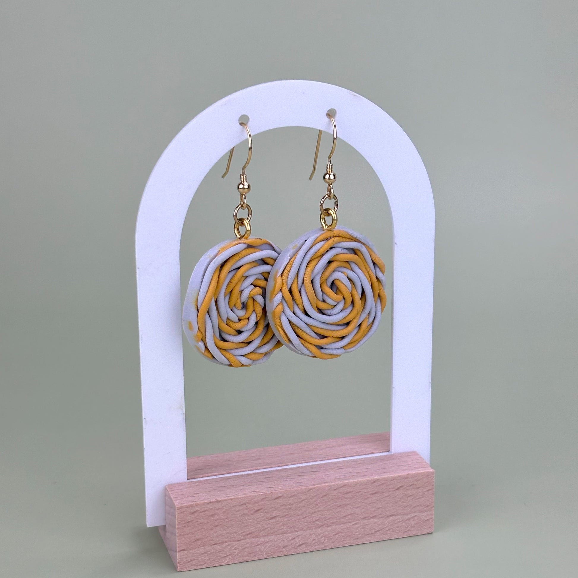 Mustard Swirl - handgefertigte Fimo Ohrringe - verspielt und kreativ - mit vergoldeten Edelstahl-Ohrhaken
