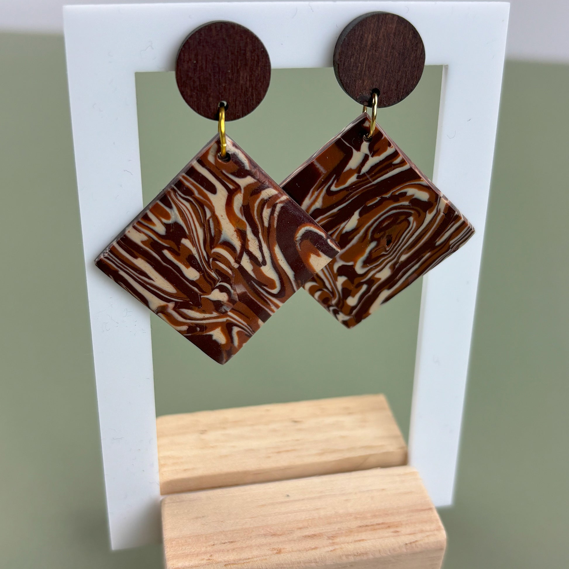 Savanna Flow – Statement-Ohrringe in Braun-Marmoroptik